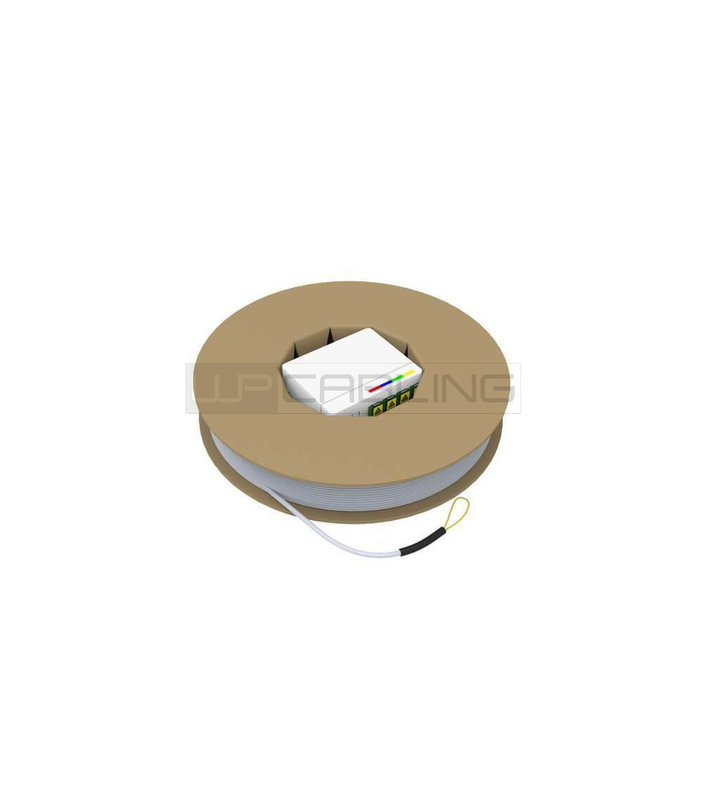 Kit composto da un cavo in fibra ottica drop a 4 fibre preterminato con 4 connettori LC/UPC con coperchio e scatola di terminazione. La scatola va posizionata all’interno di ogni unità abitativa ed il cavo va tirato fino al CSOE (Centro Stella Servizi Ottici di Edificio). E’ una soluzione molto pratica che permette di risparmiare il tempo delle operazioni di terminazione all’interno di ogni singola unità abitativa, il cavo drop è molto sottile, facile da tirare in canala.Cavo in fibra ottica monomodale loose 9/125 µm G657A2 con 4 fibre, guaina LSZH, Classe CPR Dca. Le 4 porte servono per: - TV (Fibra digitale Terrestre DVB/T) - SAT (Fibra satellite DVB/S) - FTTH1 (fibra segnale di operatore TLC 1) - FTTH2 (fibra segnale di operatore TLC 2)
